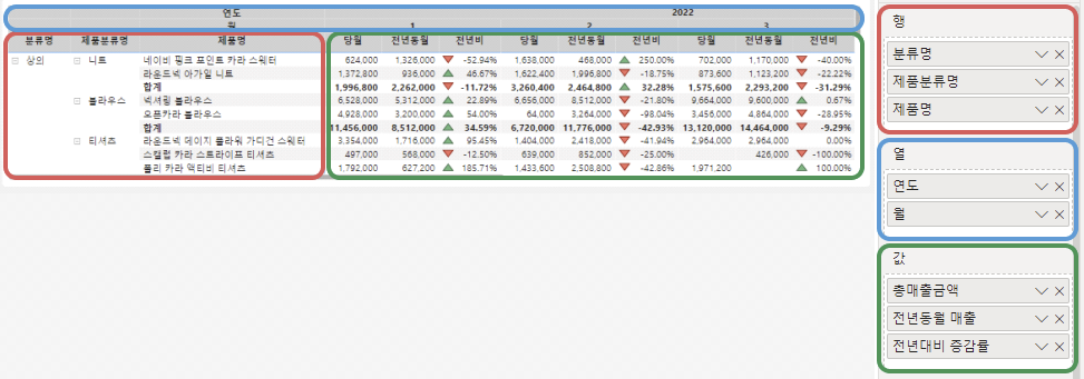 차트 중에 칸이 나뉘어서 값만 다르고 축이 같은 차트가 여러 개 있는 건 축소 다중 항목에 넣을 항목이 있다는 것이다.